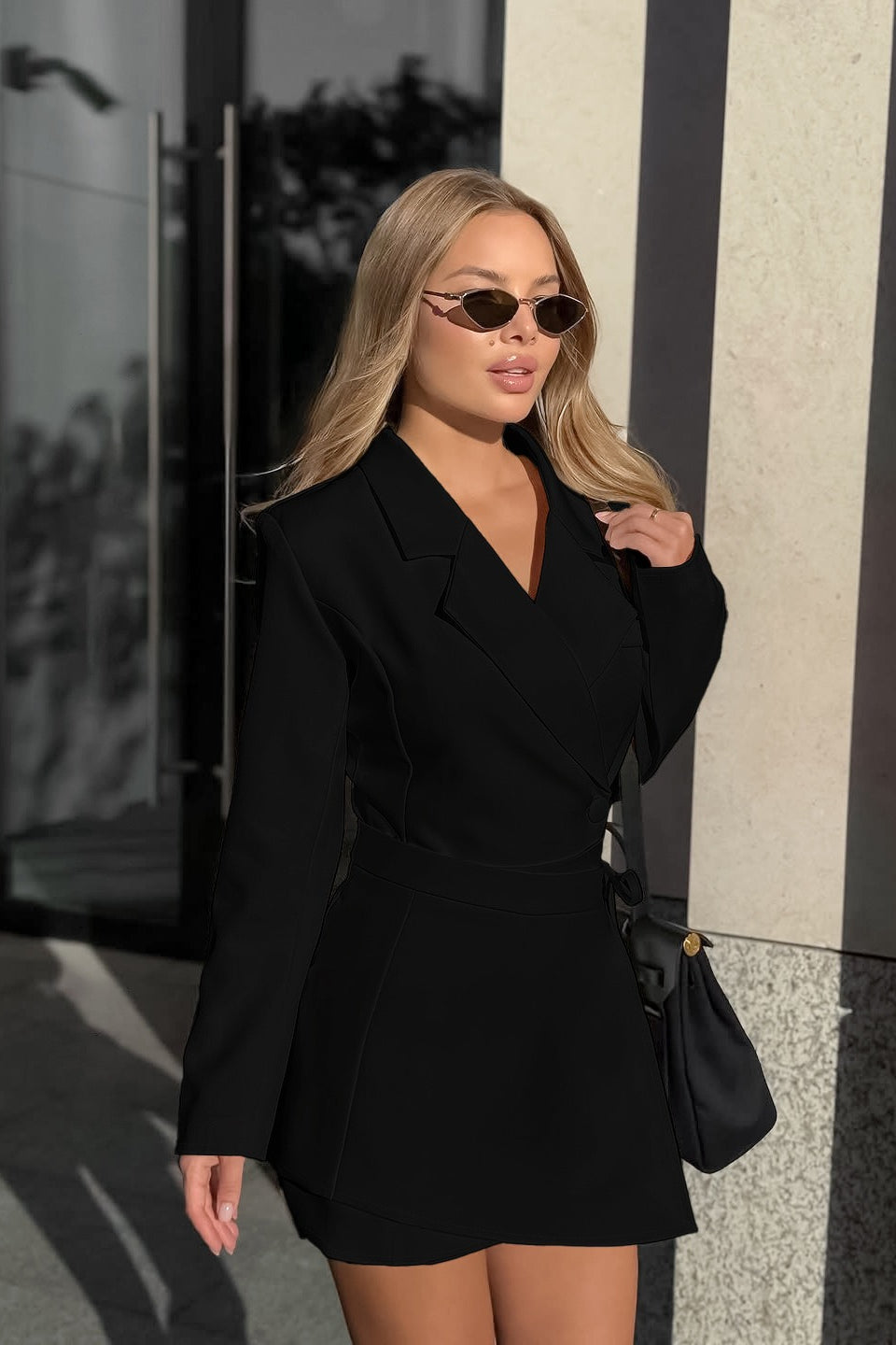 Elegant Fitted Waist Tie Bow Detail Blazer