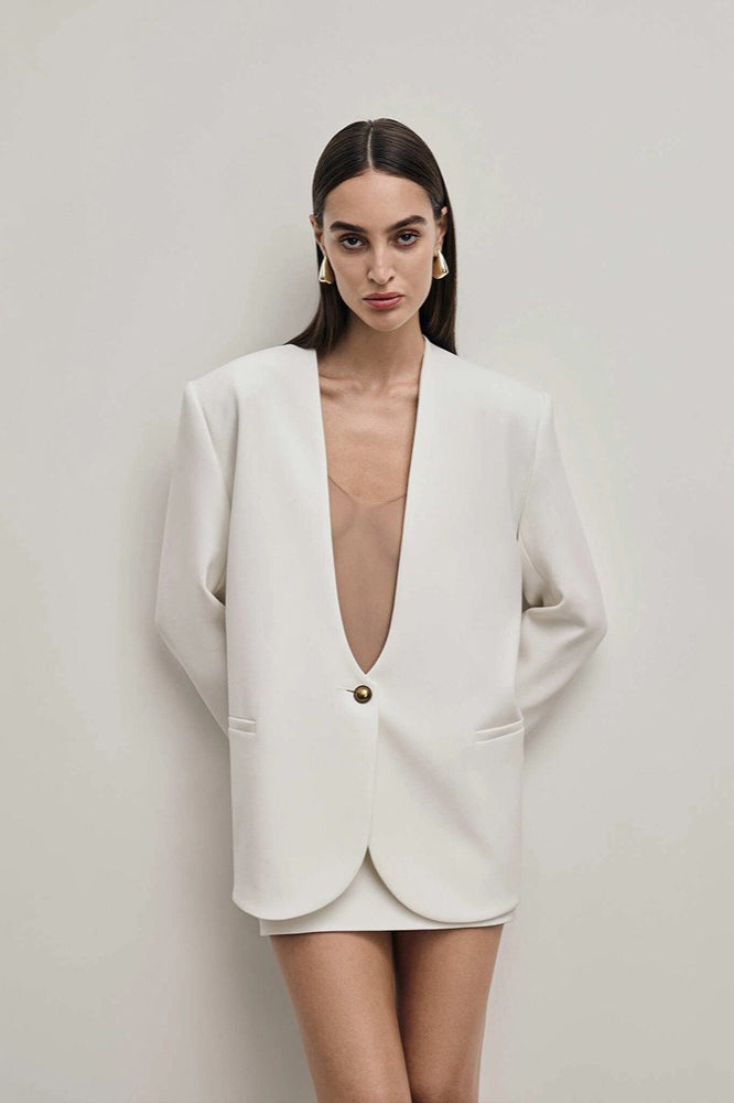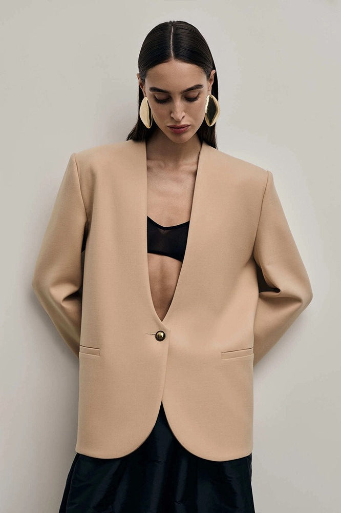 Solid Fitted Single-Breasted Regular Shoulder Blazer