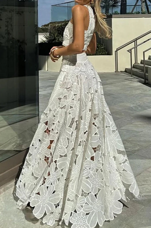 Lace Hollow Out Loose Beach Two Piece Boho Dress