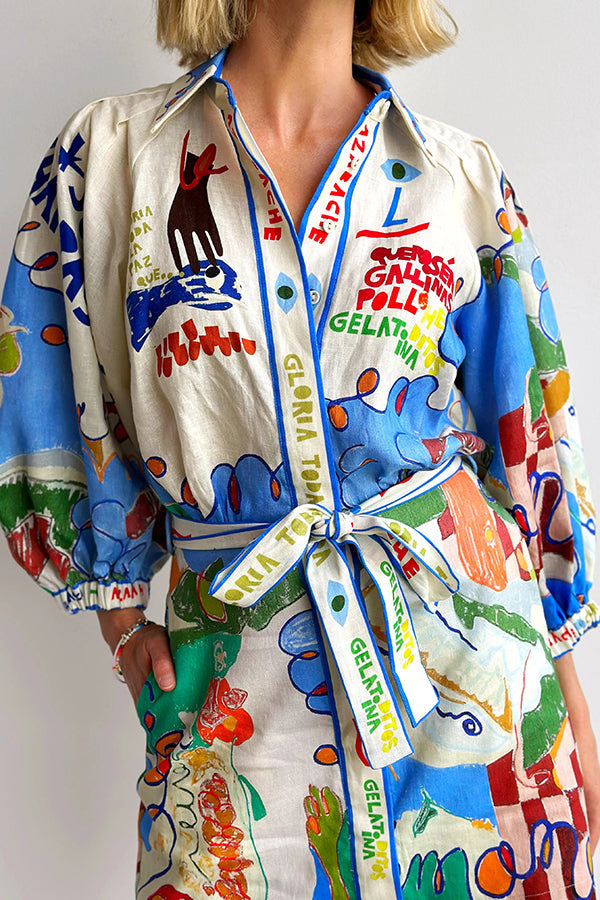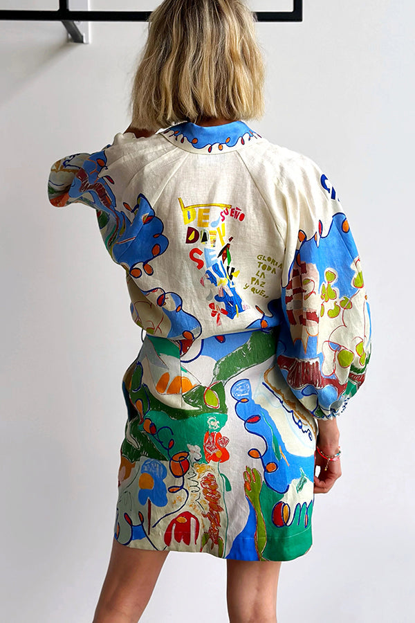 Phebe Linen Blend Unique Print Pocket...