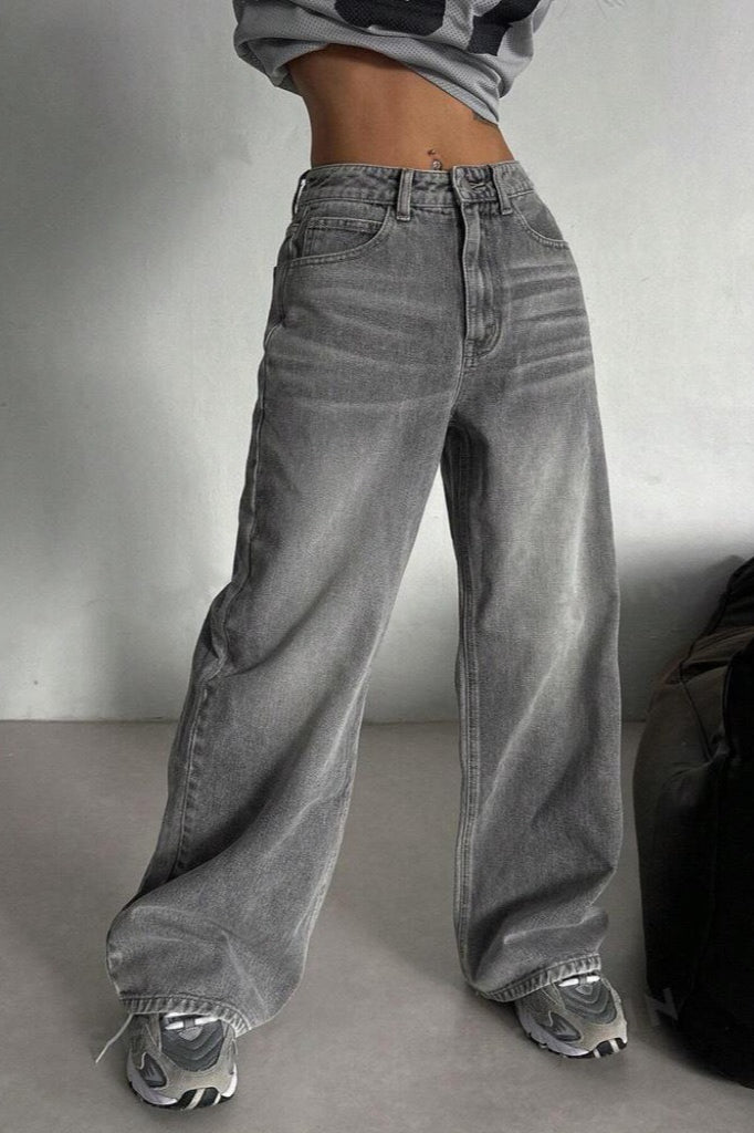 Concrete Grey Straight Leg High Waist...