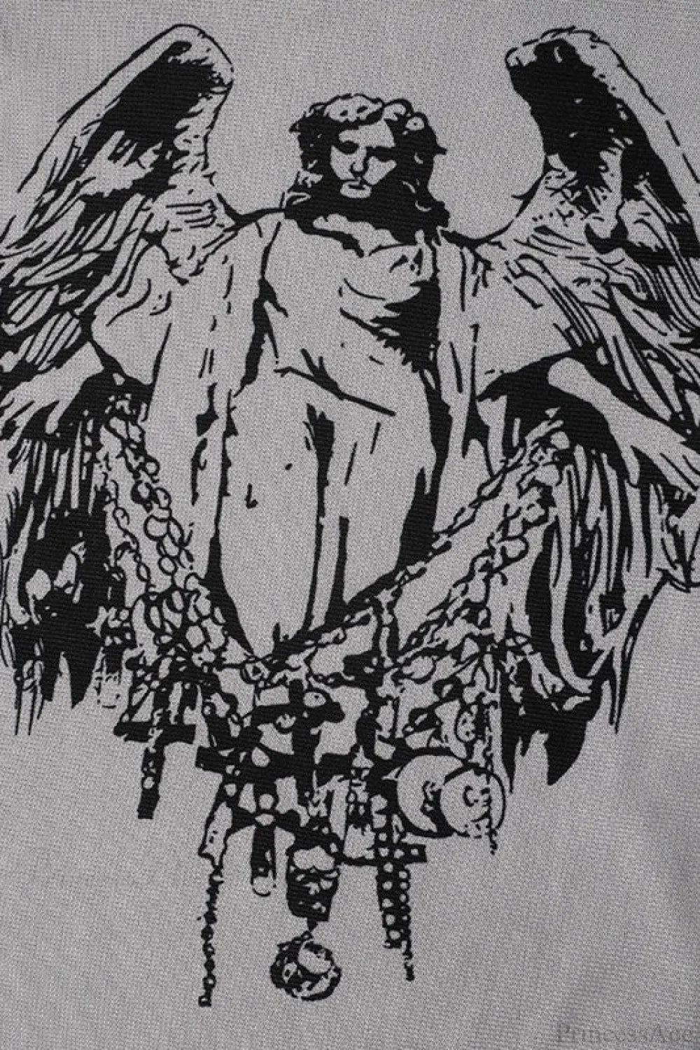 Off-the-shoulder Sheer Mesh Knit Printed Long...