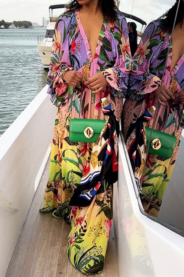 Jessy Tropical Print Tiered Ruffle Balloon...