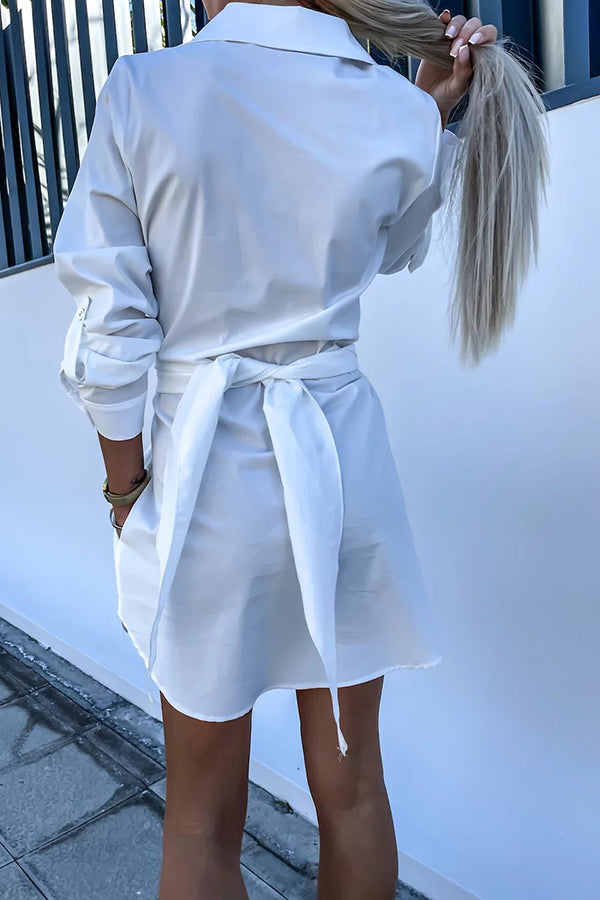 Sun Valley Tie Front Button Pocketed Shirt Mini Dress
