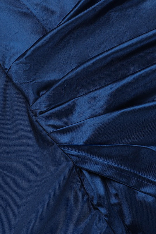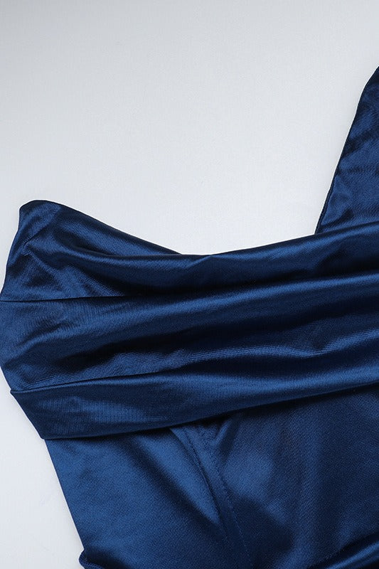 Satin Deep V Corset Slit Formal Dress