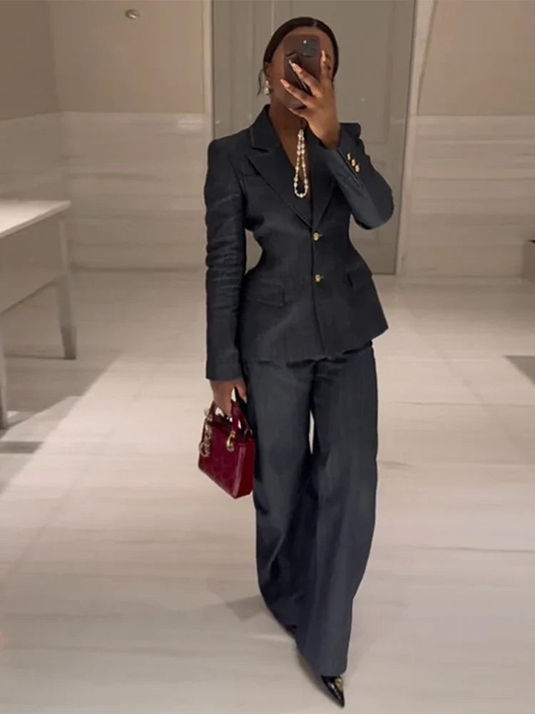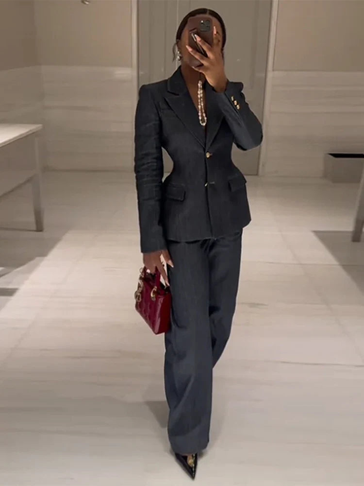 Denim Jacket High Waist Jeans Office...