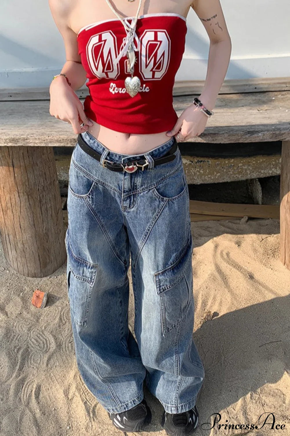 Denim Diagonal Split Wide Leg Cargo...