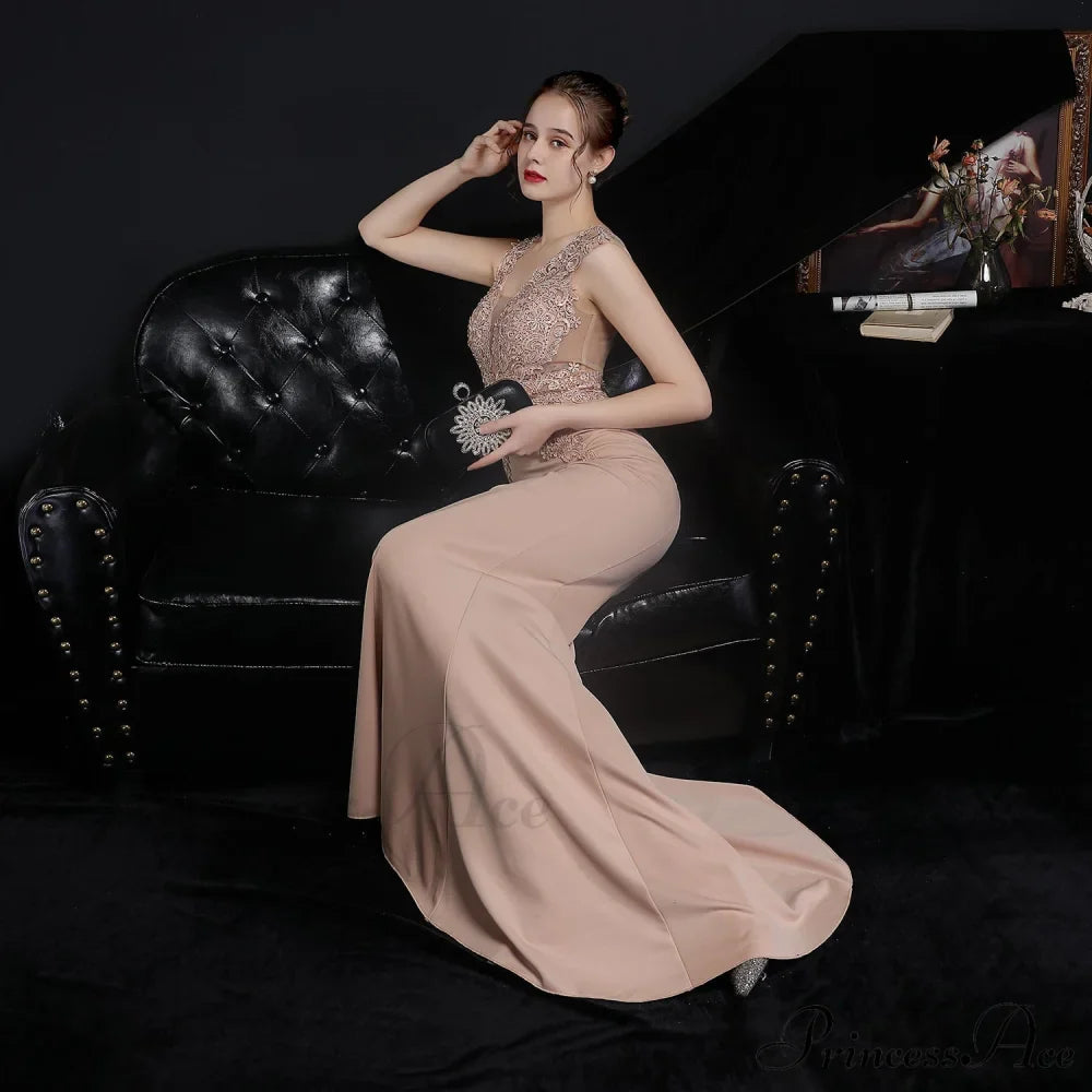 A bit flashy. Gorgeous - our gorgeous Amelia gowns will catch everyone's attention! She features a sequin embellishment with a pattern. Seam V-shaped bodice with lightly padded bust. and very long. Slim fit mermaid skirt with back zip. Trim to fit the curve. She is made of mesh and woven knitted material.