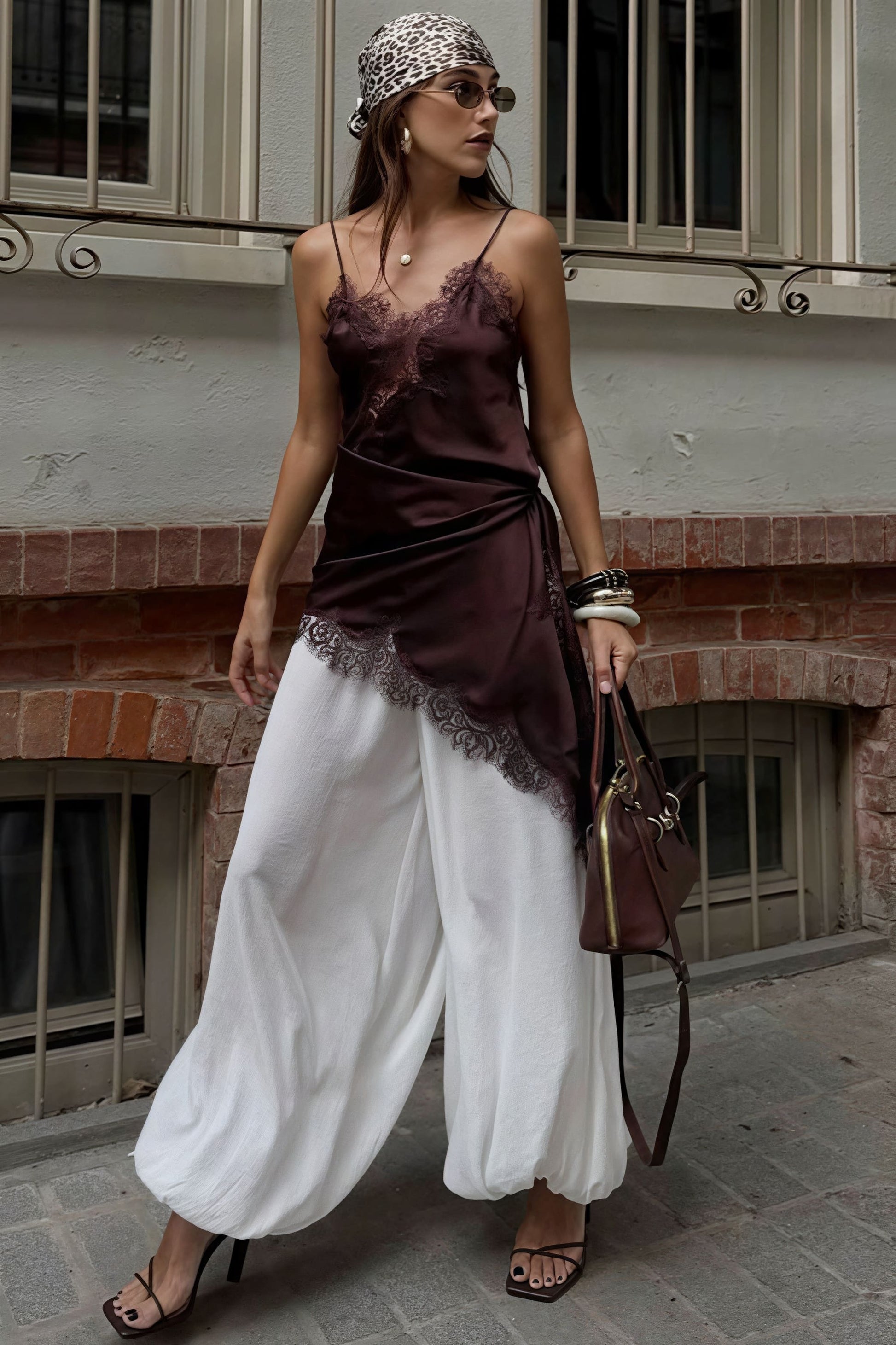 Lace Trim Patchwork Low Cut Asymmetrical...