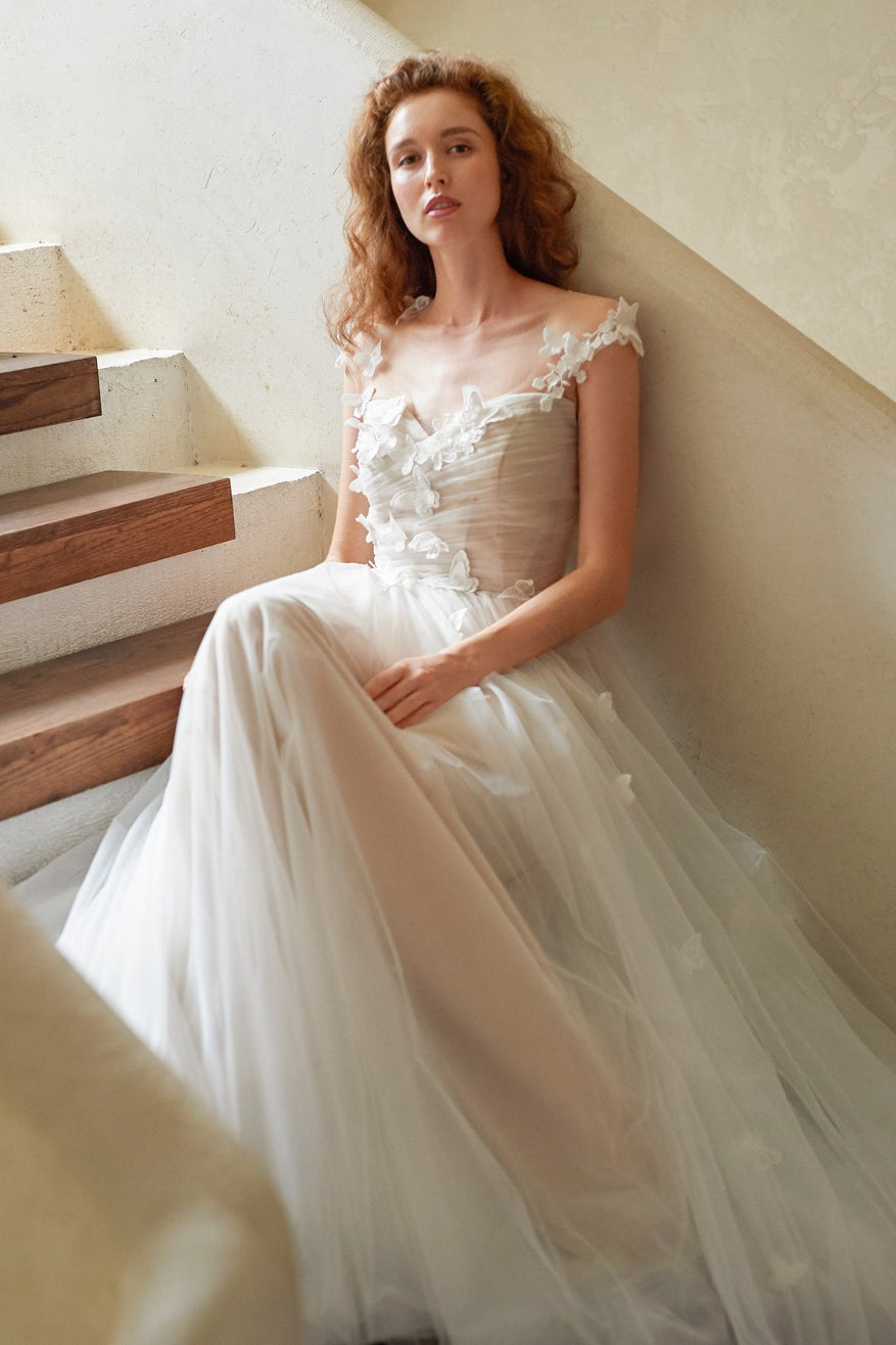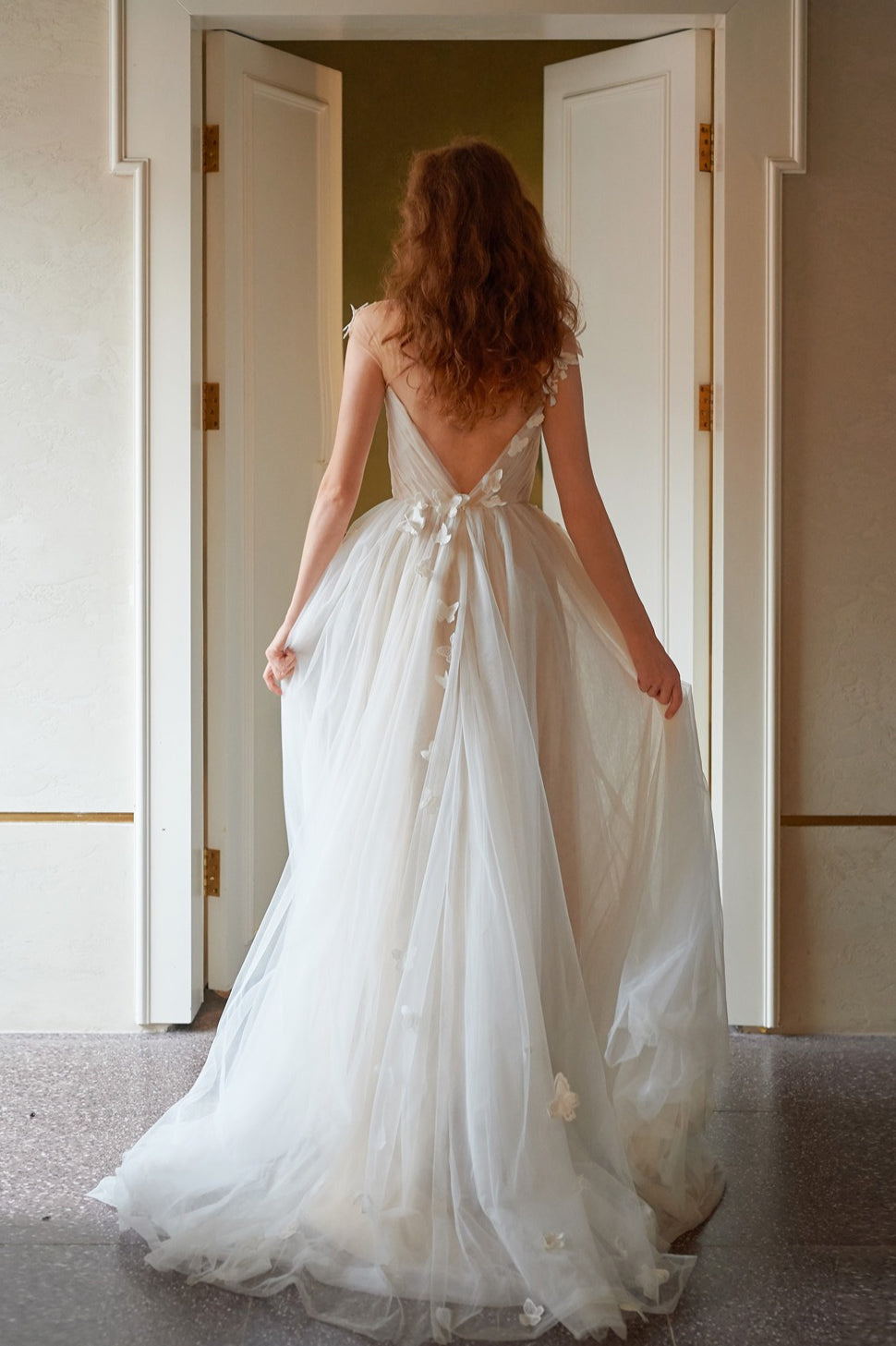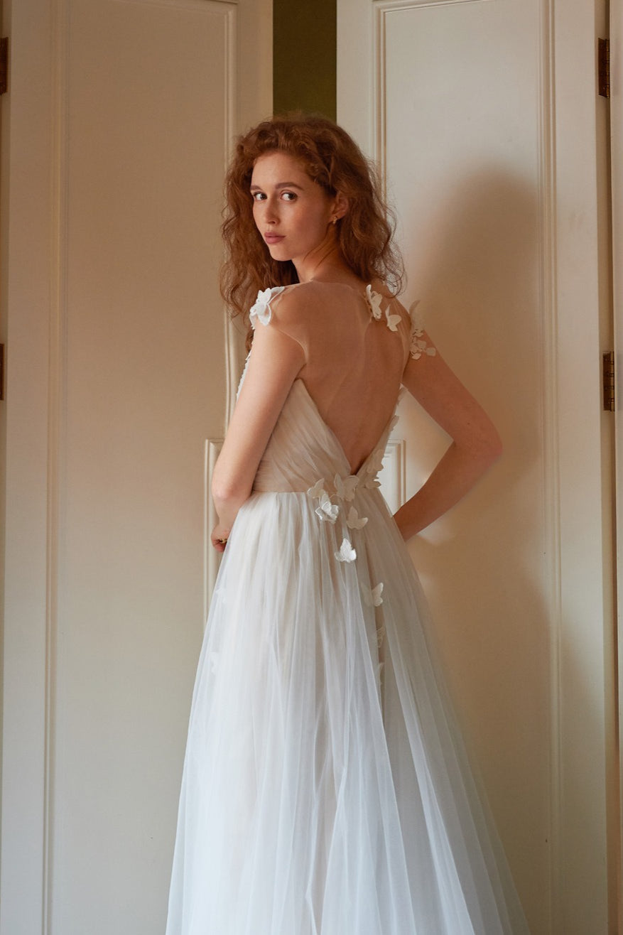 Dreamy Petal V Neck Backless Reception...